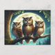 Capture the enchantment of the night with our elegant and modern postcards featuring three majestic owls perched beneath the glow of a full moon on a tree branch. Perfect for sending heartfelt messages with a touch of whimsical charm to friends and family.