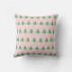 A pattern of green Christmas trees appears on this pale pink throw pillow.