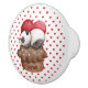 Adorable black and white panda bear is lying on a cupcake with a red heart behind him. Background is white with tiny red hearts. Personalize with your baby girl's name. There are other coordinating knobs in my shop so you can mix and match for fun too!