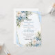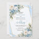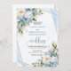 Ideal for formal, modern, or rustic-chic weddings, this dusty blue and gold floral invitation pairs perfectly with matching stationery, RSVP cards, menus, and signage for a cohesive event design.