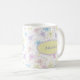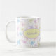 This design features whimsical flowers and swirls in pastel pink, blue, orange and purple with a white background. The background color can be customized to any color by clicking on Customize, Edit, Background.