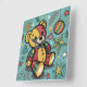 Whimsical Patchwork Christmas Teddy Bear Square Wall Clock