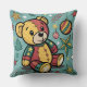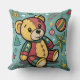 Whimsical Patchwork Christmas Teddy Bear Throw Pillow