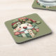 Whimsical Patchwork Santa Folk Christmas Beverage Coaster