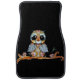This little owl is adorable. She is blue, yellow, brown and pink with huge black eyes. Her intricate patterns include cute little pink daisies. She is on a branch. Her head is light blue with a pink daisy and various patterns in brown and yellow. Her wings are light blue with daisies. Her belly has dark brown feathers and two beautiful pink daisies. The branch she stands on is also patterned in brown colors. Feel free to add your own text to the design if you like. From my original painting ink and watercolor on paper.