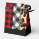 A fun casual, design made from different neutral patterns and swatches, including faux leopard spots, red and black checks. A generic style good for any occasion.