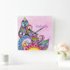 Whimsical Patterns Shapes and Swirls Square Wall Clock