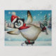 Whimsical Penguin Ice Skating Watercolor Art Postcard
