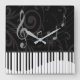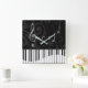 A whimsical musical design with curved piano keyboard keys and musical notes on a subtle flourish pattern in gray on a black background. Ideal for the pianist, piano student or the piano lover.