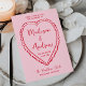 Set the tone for your celebration with this Valentine’s Day-inspired wedding invitation featuring a bold red handwritten script and a hand-drawn heart on a soft pink background. Designed with a playful retro aesthetic, this romantic invitation showcases the couple’s names inside the heart motif, creating a charming and love-filled look perfect for February weddings, Valentine’s weddings, and couples who love fun, modern stationery with a vintage touch. Personalize the design with your names, wedding date, and venue details to create a custom wedding invitation that reflects your unique style and sets the stage for a joyful, heartfelt event.