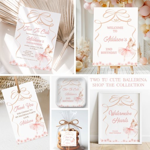 Whimsical Pink Ballerina Two Tu Cute 2nd Birthday Party Sign