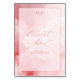 This wedding tabletop sign features a soft, pastel pink background with a dreamy watercolor wash effect, creating an airy and whimsical atmosphere. The design includes elegant cursive typography for "dessert bar" and a friendly sans-serif font for the phrase "please help yourself," offering both sophistication and clarity. Customizable initials at the top add a personal touch, making it perfect for enhancing the dessert station at your celebration. The balanced layout and warm color palette evoke a playful yet refined mood, ideal for any festive occasion.