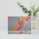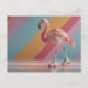 Whimsical Pink Flamingo on Roller Skates Postcard