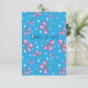 Send a bright and joyful note of appreciation with this charming card featuring hand-drawn three-petal flowers in pink and purple tones. The playful black linework and scattered white dots dance across a soft blue background, creating a lighthearted yet thoughtful design that feels both personal and polished.
