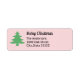You can personalize black text with your personalized message and name. At the top, you can customize the black script that says "Merry Christmas". There's additional black display text that you can edit to show your name and return address. This pale pink return address has a green Christmas tree next to the text.