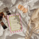 Announce your big day in style with this whimsical modern save the date invitation featuring a dreamy pink and green color palette. Designed with a perfect balance of elegance and playfulness, this stationery sets the tone for a joyful, modern celebration. The soft blush tones pair beautifully with fresh green accents, creating a romantic and contemporary look that’s ideal for spring, summer, garden, or destination weddings.