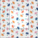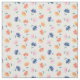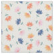 Fun floral fabric in white with a pattern of flowers in blue, yellow, orange, and pale pink.