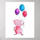 This is an original mixed media painting of a whimsical pink pig with three colorful balloons.