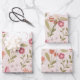 Whimsical Pink Rabbit and Floral Meadow Wrapping Paper Sheets