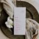 Whimsical Pink minimalist, wedding guest place card and menu. Features, bright pink typography and light pink stripe pattern backgrounds. Fonts and background color can be customized. Please note: guest names must be entered and added to your cart individually.