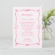 Whimsical Pink Wedding Reception Table Thank You Card