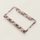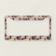 A license plate frame illustrated winter landscape in a dreamy pink palette, featuring rolling blush-toned snow hills, elegant deer with golden antlers, and a mix of pink deciduous trees and deep blue evergreens. White-and-gold fantasy towers rise in the distance, adding a magical storybook feel. Falling snowflakes, snowy shrubs, and soft color contrasts create a modern, whimsical winter aesthetic