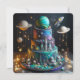 WHIMSICAL PLANETS & ROCKETS KIDS BIRTHDAY CAKE CARD