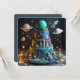 OUT OF THIS WORLD! KIDS BIRTHDAY LAYER CAKE ON THE FRONT OF THE CARD. COMPLETELY EDITABLE COPY ON THE BACK.