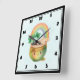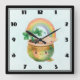 Whimsical Planter with Rainbow & Clover Square Wall Clock