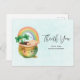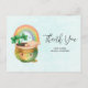 Thank you postcard, with an adorable illustration featuring a smiling green and gold pot with a cute rainbow,
