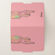 Whimsical Pointing Finger Pastel File Folders - Set of 3 file folders with separate colors of mint green, pink and peach-orange have a kooky pointing finger designed with an abstract swirly pattern on the front and back sides. The inside of each folder is a matching color with a pattern of tiny pointing fingers, just for more fun! Shown with sample text, "Work," "Home," and "School," personalize the front cover with your own text in a modern black script. For kids and adults alike.