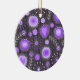 Whimsical purple grey hearts and flowers floral ceramic ornament