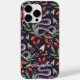 Make a bold statement with this enchanting phone case, where nature meets fantasy. Featuring a mesmerizing pattern of purple snakes with white spots, nestled among lush green leaves, red berries, and whimsical mushrooms, this design is both edgy and elegant. The dark background adds drama, allowing the vibrant colors to pop with personality.