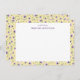 Note card featuring a seamless pattern of purple sunflowers and leaves paired with a white square where your personalized monogram is written in a sans serif font. You can find more background color options in our store.