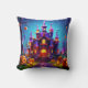 Whimsical Purple Twilight Haunted House Throw Pillow
