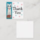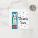 "A charming and whimsical white cat doodle on a bright blue background, surrounded by playful dots. This quirky cat is standing on a pile of books and is wearing a cute collar with a pink love heart and rosy cheeks, adding a touch of personality and charm. Perfect for cat lovers, this adorable illustration is sure to bring a smile to anyone's face. To the right of the cat, on a white background, the words 'Thank You' are written in a whimsical, font. Ideal for expressing gratitude in a fun, creative way."