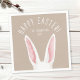 Destei's watercolor illustration of white and pink bunny ears on a beige background with “Happy Easter” at the top and a personalizable text area for your family name, event or theme. Perfect for Easter gatherings, spring celebrations and festive tables.
