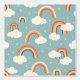 Create a dreamy atmosphere with this charming rainbow and cloud pattern in a soothing retro color palette. Perfect for nurseries and children's rooms, this design features soft coral rainbows, fluffy white clouds, and delicate gold stars on a calming sage blue background. The modern, minimalist style gives a fresh twist to classic nursery motifs, making it ideal for bedding, wallpaper, or fabric. A gender-neutral design that brings warmth and whimsy to any space.