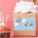These personalized gift stickers are perfect for attaching to birthday presents. Pre-filled with your child’s name and a spot for them to write in their friend’s name. Featuring an illustrated rainbow with two clouds on a light blue background and coordinating multi colored letters spelling “Happy Birthday". Shop the entire coordinating collection for all your rainbow party needs.
