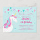 Whimsical Rainbow Unicorn Aqua 5th Birthday Invitation Postcard