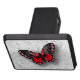 An eye-catching and beautiful design featuring a stylish red, black and white butterfly on a background with a subtle pattern of foliage and flourishes in shades of gray. The shading around the butterfly creates a printed 3D effect to create an impression of the butterfly raised above the background. Perfect for the female who loves all thngs to do with butterflies.