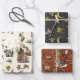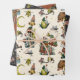 Cute wrapping paper sheets with whimsical illustrations of festive Christmas mushrooms, butterflies and stars.