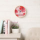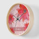 Whimsical Red Flowers Swirly Leaves Add Name Pink Clock