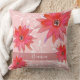 Whimsical Red Flowers Swirly Leaves Add Name Pink Throw Pillow