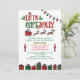 Get ready to spread the cheer with this whimsical “Let’s Get Jolly” Christmas party invitation! Featuring Santa and his reindeer dashing across the top and festive nutcrackers, string lights, and gift boxes decorating the front and back, this lively card sets the tone for a joyful holiday gathering.