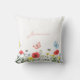 Whimsical Red Green Wildflower Butterflies Name Throw Pillow