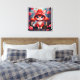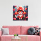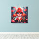 Whimsical Red Mushroom Cat Stretched Canvas Print