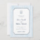 This whimsical wedding invitation features a navy blue hand drawn frame against a light blue striped background. At the top of the invite, there is a doodle scribble illustration of a diamond ring in a seashell ring box. The details follow with the couple's names in charming script lettering. Ideal for summer, italian, beach, yacht, and coastal wedding themes. Cards reverse to an engagement photo of your choice. Edit most wording and text colors to make this sweet wedding invite fit your event needs and personal style. View the collection linked on this page for the full wedding suite or visit our store for more wedding invitations.