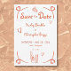 Whimsical Retro Hand Drawn Sunset Orange Wedding Save The Date