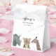 Cute and whimsical safari theme baby shower favor box featuring illustrations of animals (rhino, leopard, and giraffe).